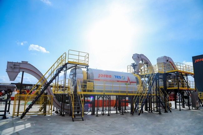昨日上午,记者一行来到杰瑞股份全资子公司——杰瑞环保科技有限公司。在这里,一套最新发布的锂电池资源化循环利用成套设备正在紧锣密鼓地进行带料测试,测试完成后将发往澳大利亚。“这套设备可将磷酸铁锂、三元锂等电池进行带电破碎,将退役后的废旧锂电池进行资源化、无害化处置回收。”杰瑞环保主任工程师闫荣杰介绍,“我们运用柔性脱粉技术,可以使黑粉的回收率和回收纯度从行业的95%提升到98%,每年可为客户提高百万级别的收益。同时,促进镍、钴、锂等金属元素资源循环利用,减少资源浪费和环境污染。”
