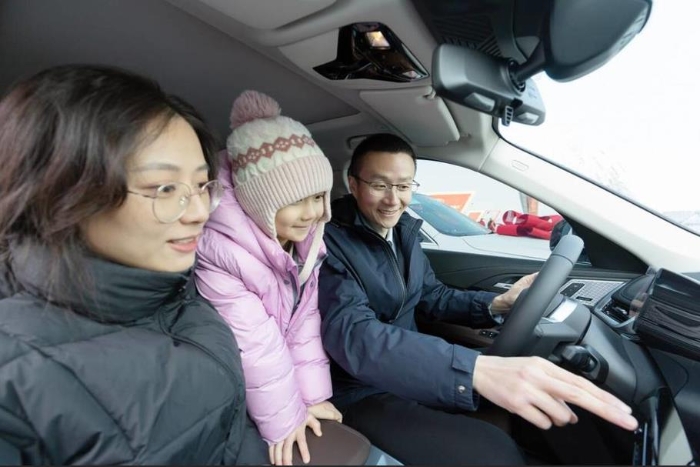 获奖员工及家属开心体验新车。