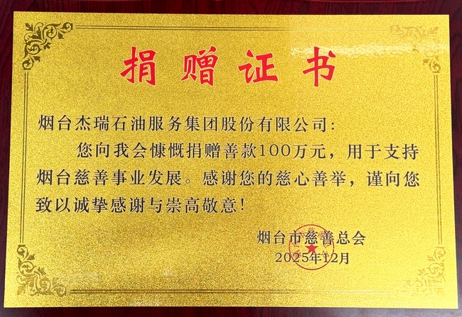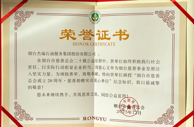 举善无言,大爱致远。本次获奖不仅是对杰瑞过往公益行为的肯定,也承载着社会各界的信任与期许。未来,杰瑞将以此为起点,用实际行动诠释新时代中国企业的责任与温度。