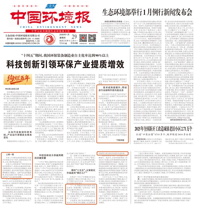 《中国环境报》头版头条报道:杰瑞再生循环以技术创新引领行业提质增效